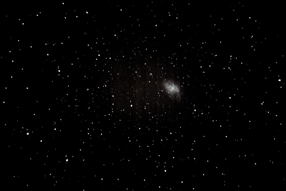 il s'agit d'une nébuleuse qui est le résidu d'une explosion de supernova, observée en 1054 par les chinois.Situés à 6500 années lumières .Prise avec canon eos 300d 3 poses de 2 minutes F/D=6 LE 15/01/05 +2° leger vent