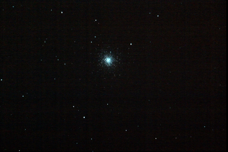 il s'agit d'un amas globulaire (plus compact qu'un amas d'étoiles). visible ici au centre de la photo prise par camera scr 1300 xtc par addition de 3 images resultats d'une cumulation de 3 images chacune de 30 sec, soit une pose totale de 4'30. photo prise 18/09/2003