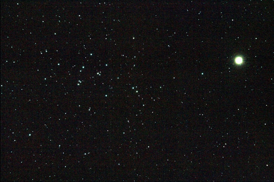 C EST UN AMAS OUVERT PROVENANT D UNE NEBULLEUSE QUI A EXISTE IL Y A 400 MILLIONS D ANNEES IL COMPTE PRES DE 350 ETOILES ET EST DISTANT DE 580 ANNEES-LUMIEREprise en cumul d image sur 30sec par camera 1300 xtc