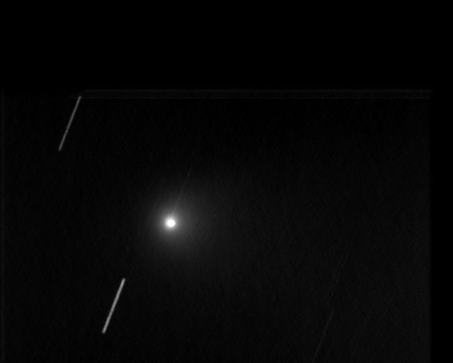 au déplacement de la tête de la comète (l'intervalle de temps entre chaque point est de 3 minutes ).